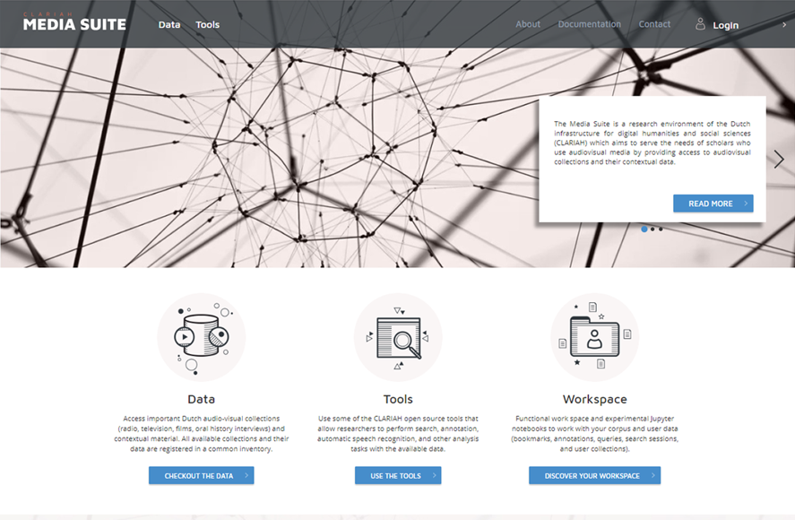 Image 2 : Screenshot of the user interface of CLARIAH’s Media Suite (version 3) ( https://mediasuite.clariah.nl/ ).